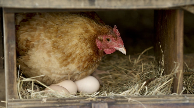 Hen in a laying box