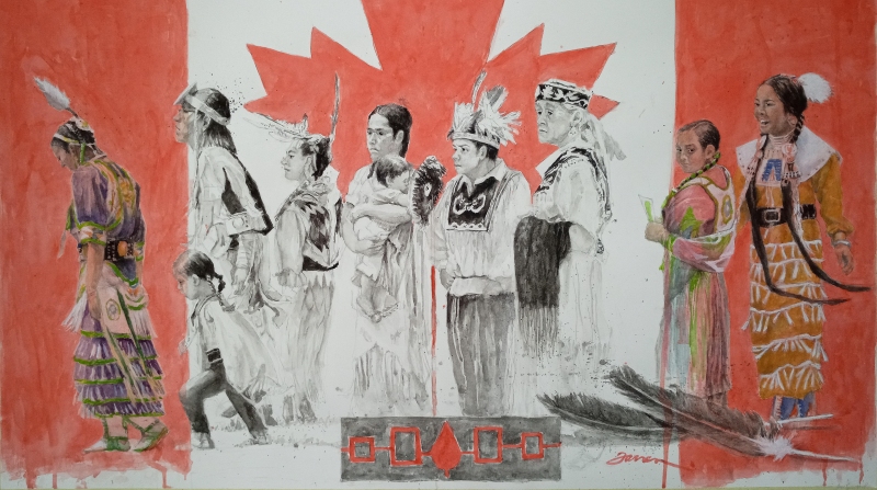 As of this week and continuing through December 18, a painting by local artist Barbara Farren titled Our Sisters and Brothers, Our Burden of Shame is on display at the N3XT Canada Exhibition staged by the Arts and Letters Club in Toronto, a very prestigious club founded in 1908 by members of the Group of Seven to support the Arts.